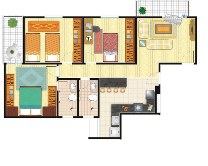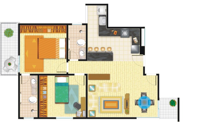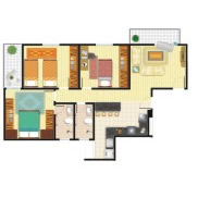 * Os objetos, móveis, revestimentos, parede e forro são sugestões decorativas e não fazem parte do contrato. O detalhamento de serviços, equipamentos e acabamentos que farão parte deste empreendimento está no memorial descritivo. Medidas livres entre as paredes estão sujeitas a variações em decorrência da execução da estrutura. Imagens ilustrativas.